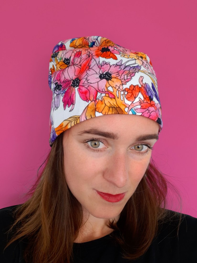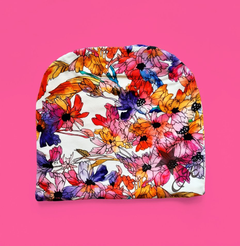 Tagi: #bawełna 100%, #cienka czapka, #grafika artystyczna, #wzór kwiatowy