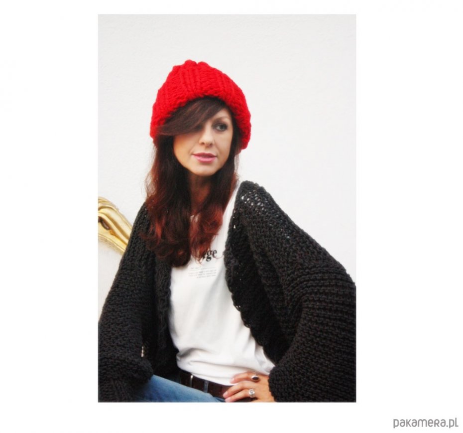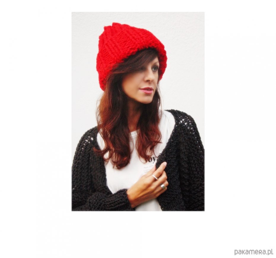 Ręcznie wykonana czapka w kolorze pięknej czerwieni (karmazyn)