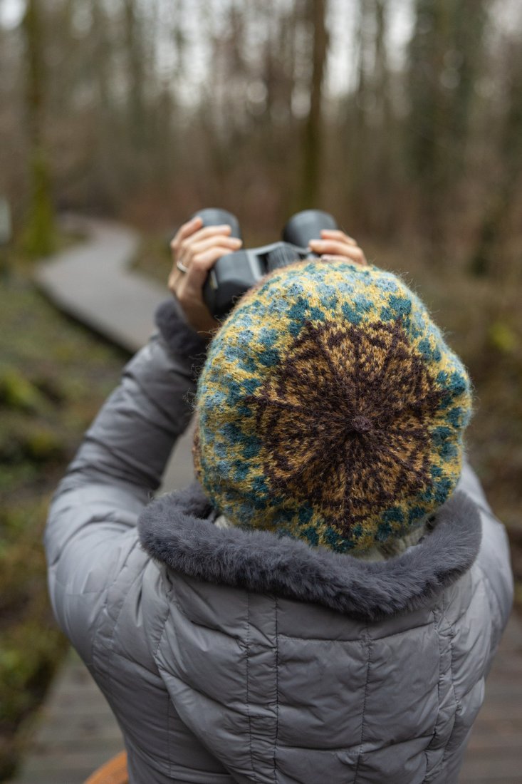 Ma kształt fantazyjnego beretu. Powstała z włóczki o szlachetnym składzie (wełna owcza, wełna alpaki, wiskoza), częściowo filcowanej, która pozwala uzyskać dzianiny ciepłe i miękkie o nieco rustykalnym charakterze. Brzeg beretu wykonany został z podwójnej dzianiny, co daje dodatkową izolację termiczną. Unikatowy żakardowy wzór przywołuje letnie wspomnienie łanu kwitnącego lnu.