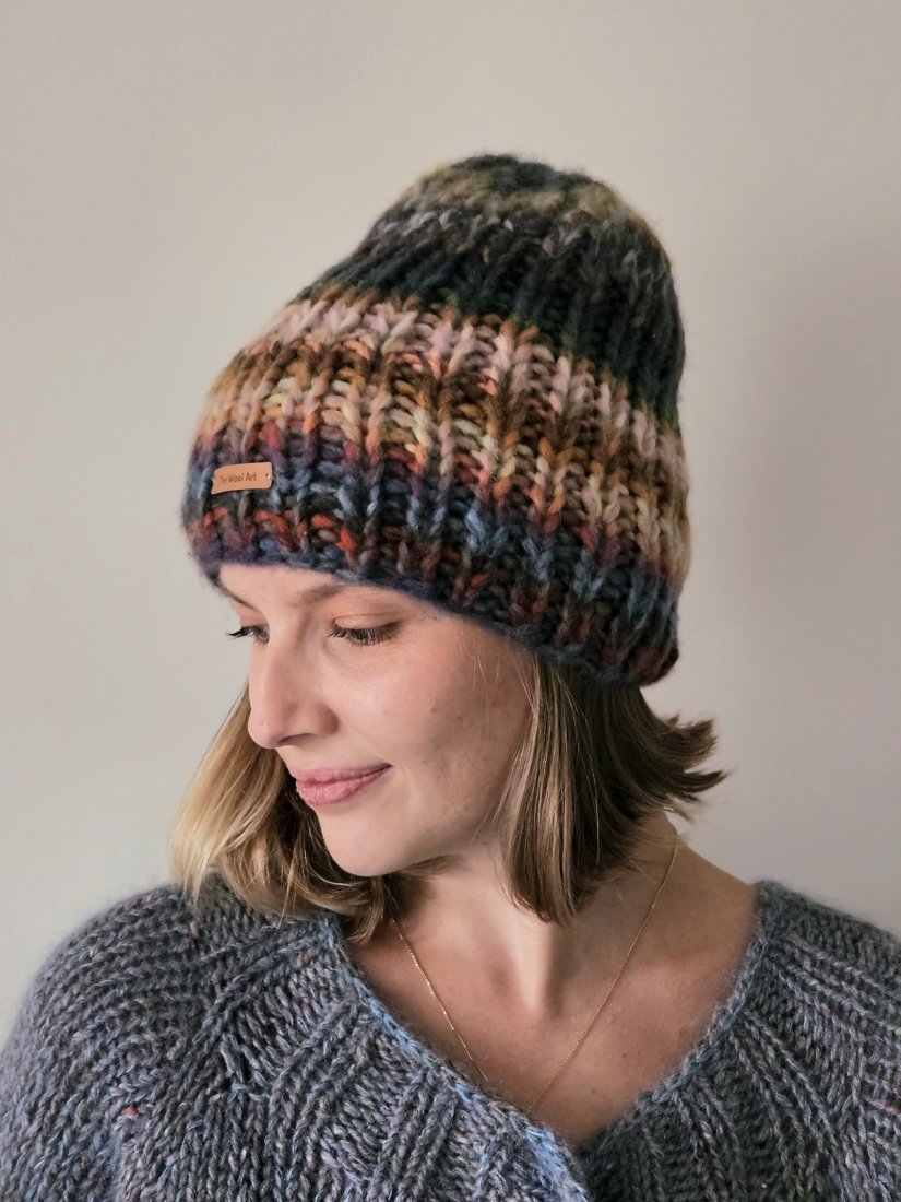 Czapka ręcznie wykonana na drutach z najwyższej jakości materiałów: miękka wełna merynosa zapewnia ciepło i przytulność, doskonały wybór na chłodne dni. Czapka jest przeznaczona na dużą głowę, na obwód 56-62 cm a jej długość to 25 cm.