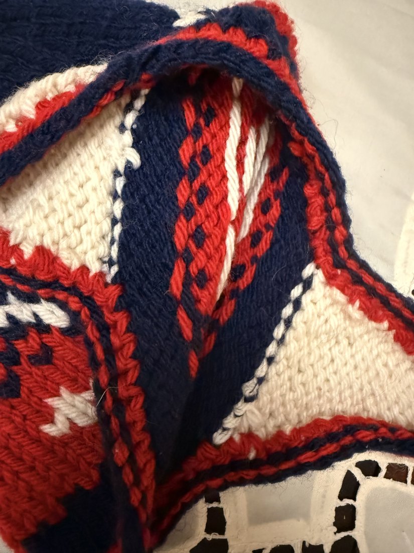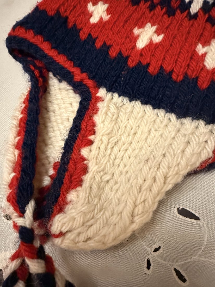ręcznie robiona na drutach czapka dla dziecka.