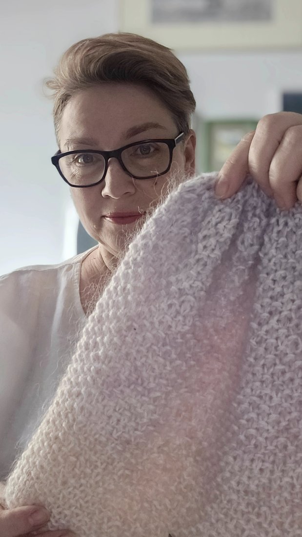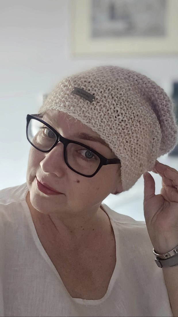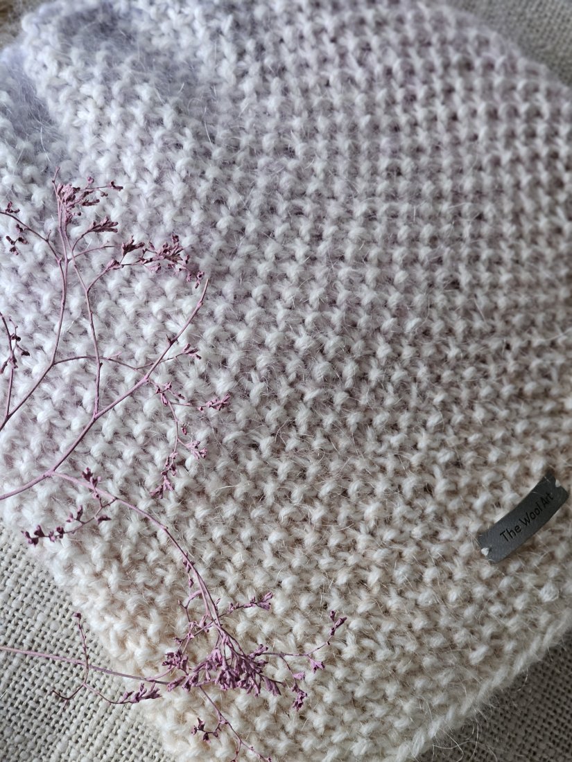 Czapka ręcznie wykonana na drutach z najwyższej jakości materiałów: miękka wełna merynosa połączona z delikatnym moherem z jedwabiem. Idealnie ciepła, lekka i elegancka - doskonały wybór na chłodne dni..