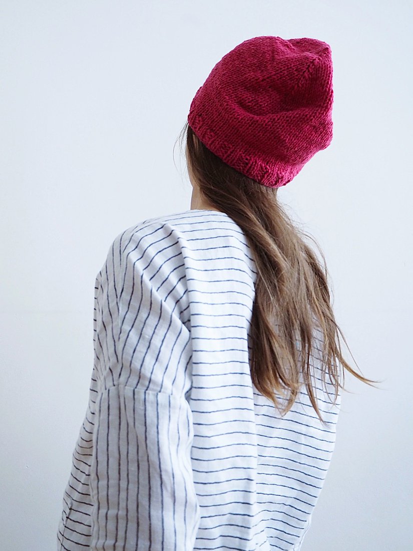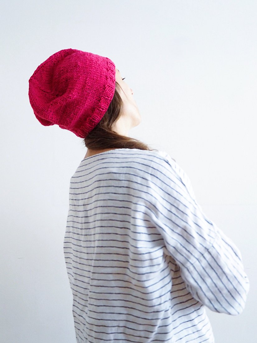 Czapka jest wykonana ręcznie na drutach z włoskiej włóczki Borgo de pazzi amore 115.