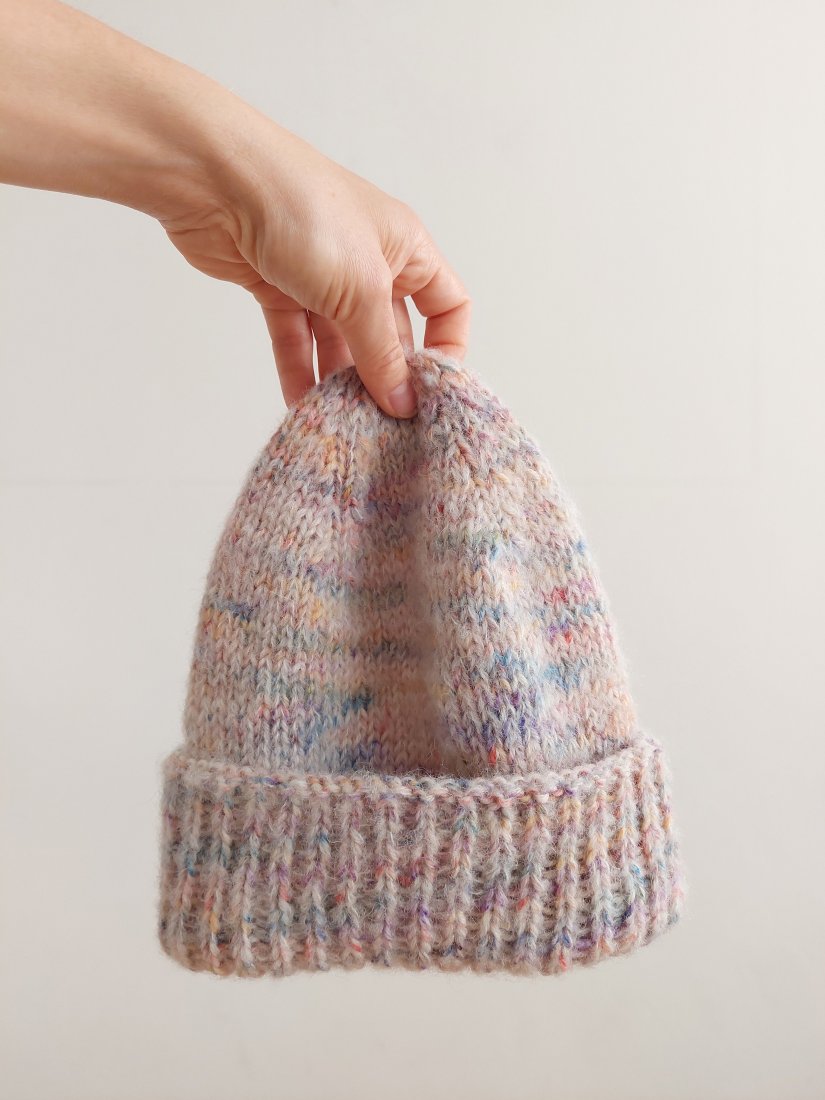 Rozmiar one size S/M, odpowiednia już dla obwodu głowy około 54cm i więcej (czapka jest elastyczna, dopasuje się). Może być noszona odwinięta (jak fisherman beanie), z lekkim odwinięciem lub bez odwinięcia.