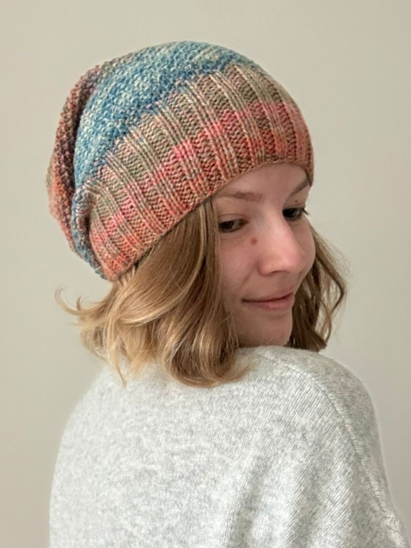 Czapka ręcznie wykonana na drutach wysokiej jakości włóczki będącej połączeniem wełny i akrylu 8020 % ,miękka ciepła, lekka i elegancka – doskonały wybór na chłodne dni..