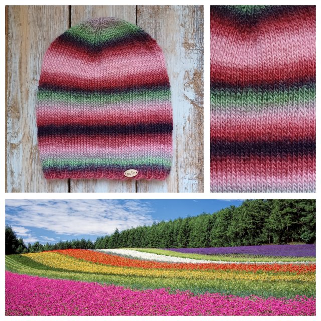 czapka damska ręcznie zrobiona z wełny włoskiej. wesołe kolory. cza...