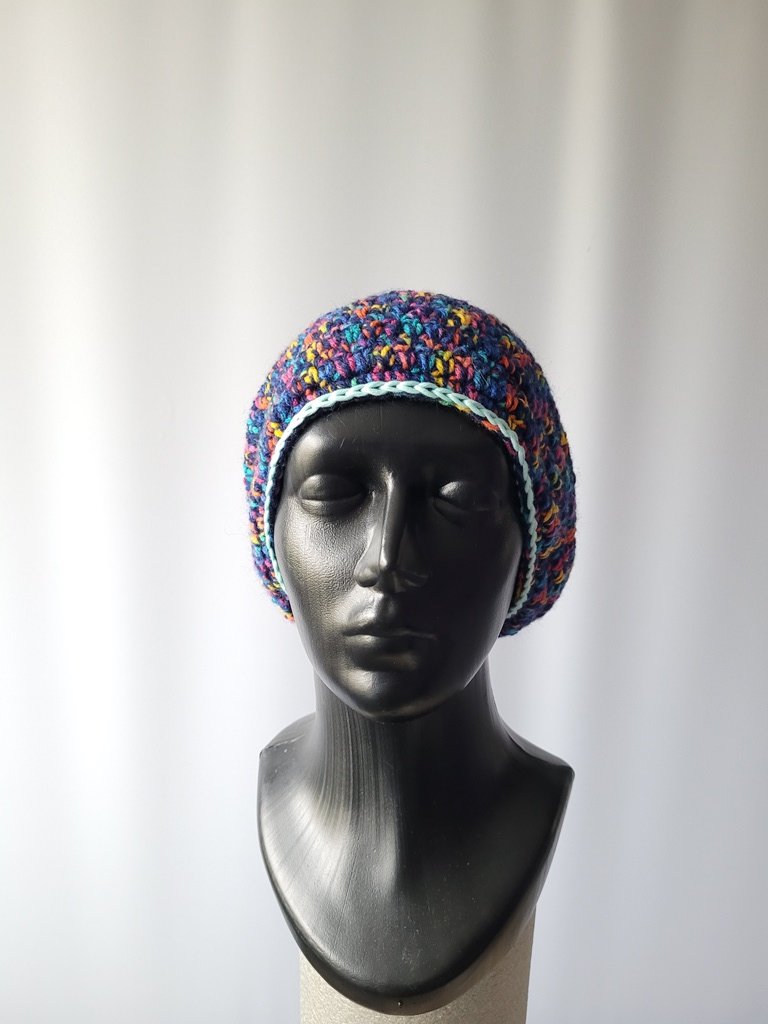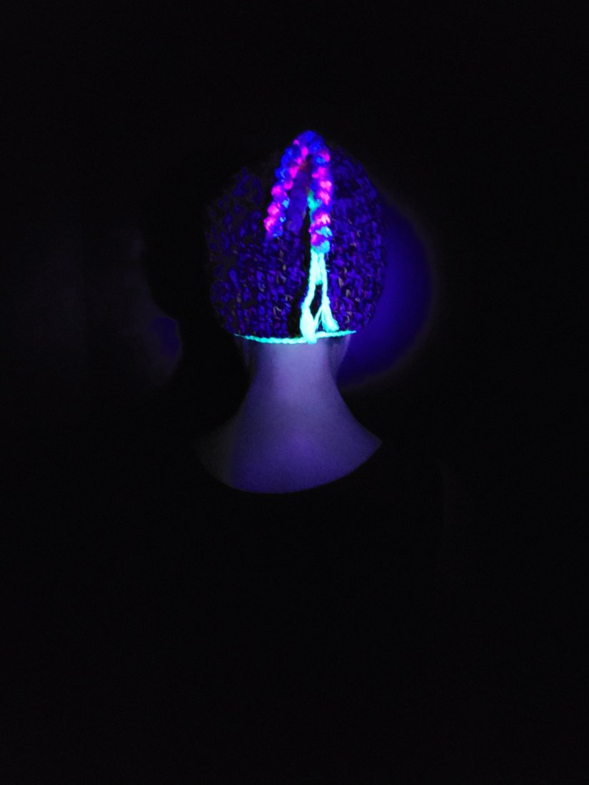 Gruba czapka z włóczki akrylowej z elementami świecącymi w ciemności.