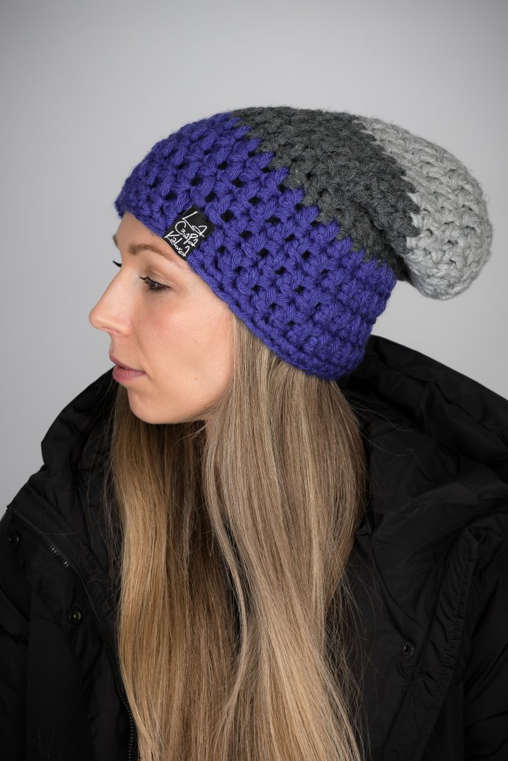 Trójkolorowa czapka TRIQUENCE jest ręcznie robiona, z wysokiej jakości włóczki, co czyni ją miękką i miłą w dotyku. Czapka jest długa, mięsista i ażurowa. Gruby luźny splot sprawia, że czapka świetnie się układa i oddycha.