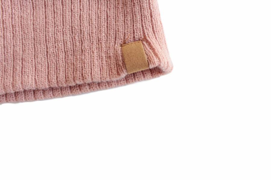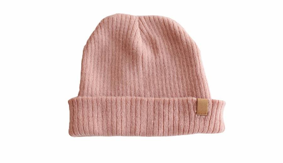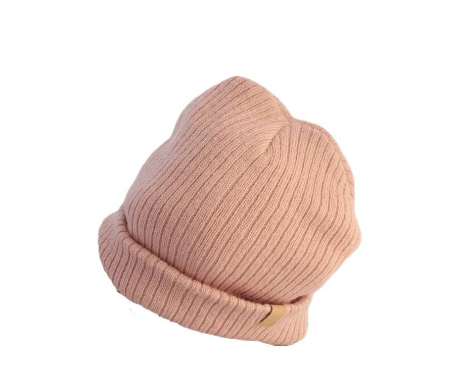 Czapka vintage w pudrowym kolorze wykonana z elastycznej dzianiny.