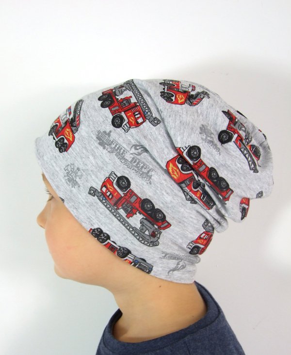 Czapka wykonana w dzianiny dresowej w wozy strażackie, uszyta z dbałością o szczegóły i komfort dziecka, nie posiada szyć i obrobień przez co "nie gryzie" małej główki :) Czapka jest uszyta z dwóch warstw dzianiny. Po zakupie należy podać rozmiar w cm (obwód głowy).