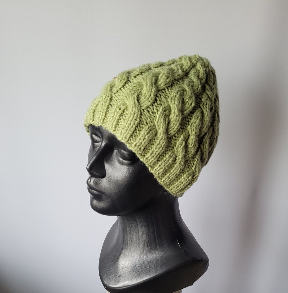 Tagi: #czapka na drutach, #czapka z warkoczami, #czapka zielona, #czapka zimowa