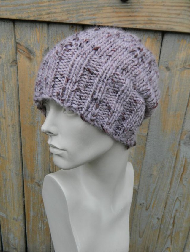 Zamówione 2 sztuki * Gruba wełniana czapa tweedowa, jaśniutki pastelowy róż nakrapiana rudością i czernią. Wydziergałam ją z fantastycznej gatunkowo 100% angielskiej wełny. Jest bardzo ciepła, mięsista i jak na wełnę setkę miła w dotyku. Fason - krótszy krasnal, daje dużą swobodę formowania na kilka sposobów, wg upodobania. Najlepiej będzie pasowała na głowę o obwodzie ok 56-59cm, głębokość 28cm.