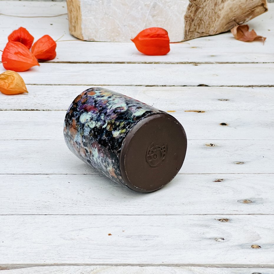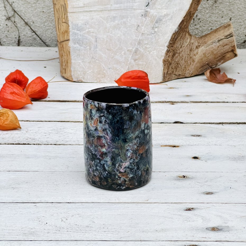 Czarka kubek ceramiczny o pojemności 200 ml została uformowana ręcznie i ozdobiona zlewającymi się kolorowymi szkliwami. Nadaje się do serwowania herbaty matcha oraz innych gorących i zimnych napojów. Idealny jako mały wazonik. Będzie ciekawym akcentem dekoracyjnym w kuchni, łazience lub na półce z książkami. To idealny prezent dla osoby ceniącej sobie ręcznie wykonaną ceramikę.