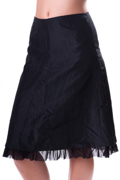Czarna, elegancka spódnica. Rozmiar na metce S - 36. Na dole mała ozdobna falbana. Marka Pretty Girl. Materiał - tafta. Wymiar to ok. Szerokość w pasie 35,5cmx2, długość ok. 61cm. Stan: bardzo dobry!