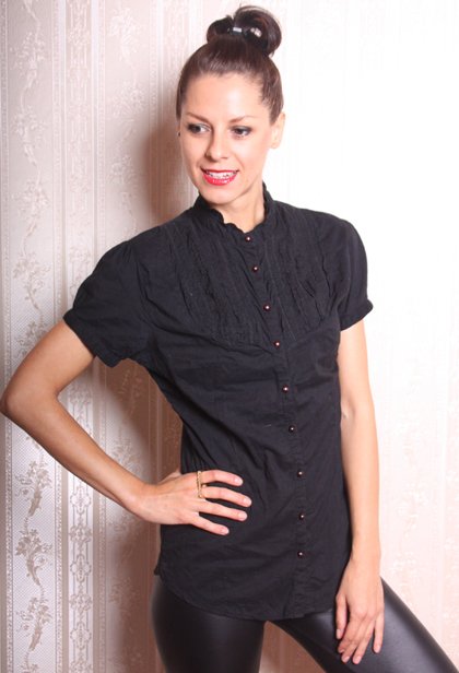 CZARNA KLASYCZNA BLUZKA Z KRÓTKIM RĘKAWEM(BUFKI), ROZM M,OSOBA NA ZDJ.NOSI ROZM.S