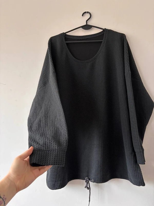 #wafflesweater #waffletop #waffleknit #blacktop #oversizetop #oversizeblouse #drawstringhem #adjustablehem #batwingsleeve #comfywear #athleisurestyle #streetwear #loosesweater #plussizefashion #sizeL #sizeXL #blackoversize #darkgreytop #casualwear #fallfashion #wintertop #loungewear #batwingtop #chunkyknit #texturedtop #blackwaffle #pulloveroversize #longsleeves #womenswear #instafashion