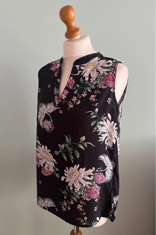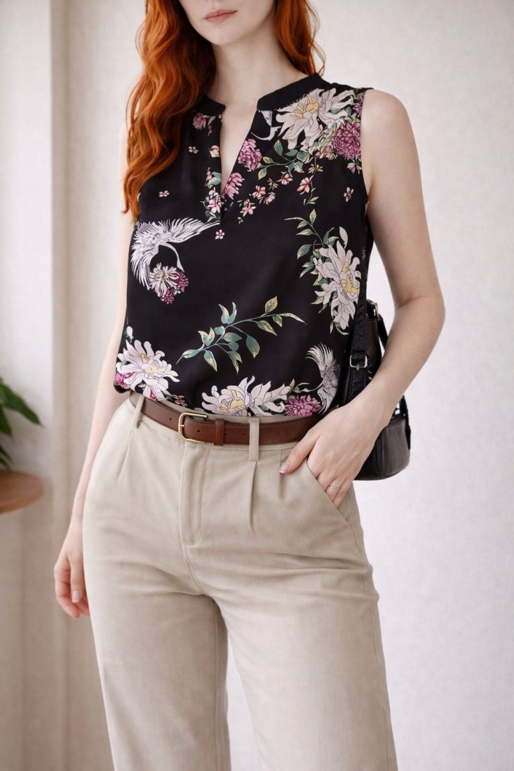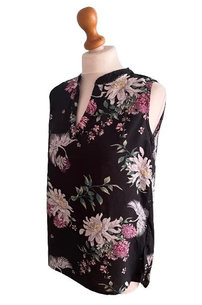 Czarna bluzka na lato 100 wiskoza w kwiaty i żurawie.