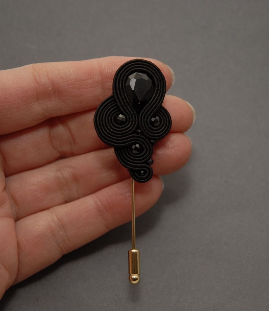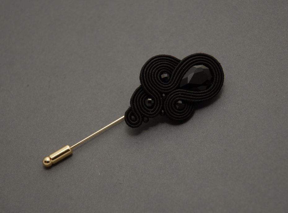 oferuję broszkę (szpilę) zrobioną techniką sutasz, ozdobioną fasetowanymi kaboszonami i onyksami