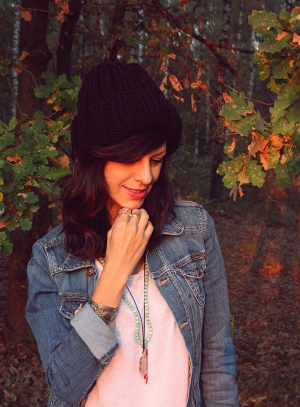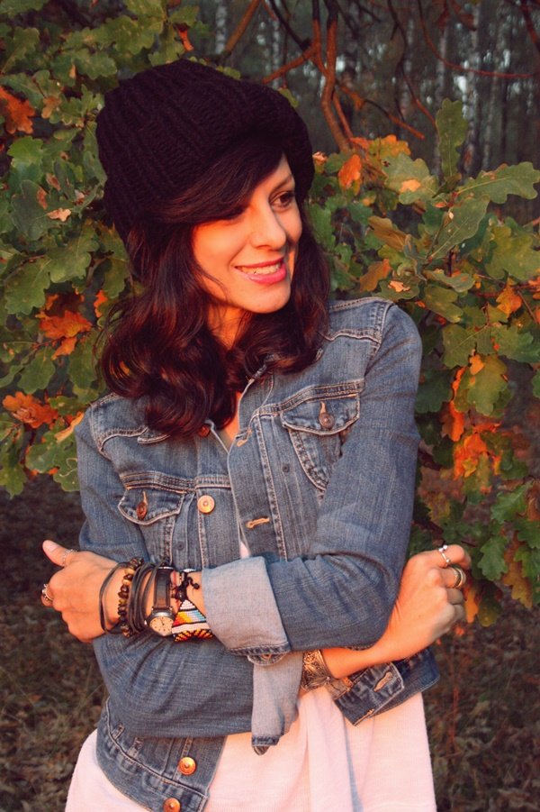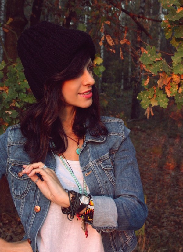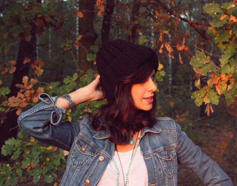 Ręcznie wykonana, gruba, mięsista czapka w kolorze czarnym.