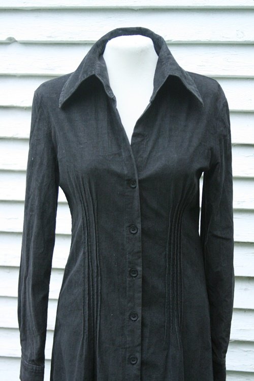 Czarna, długa koszula z drobnego sztruksu-płaszczyk, rozmiar M, 97%COTTON, 3% LYCRA