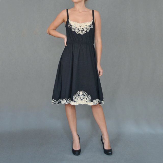 Letnia, przewiewna sukienka z cienkiej bawełny. Dół szeroki. Pięknie ozdobiona haftem w kolorze ecru.
