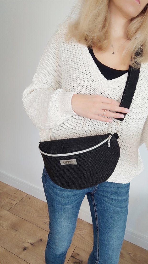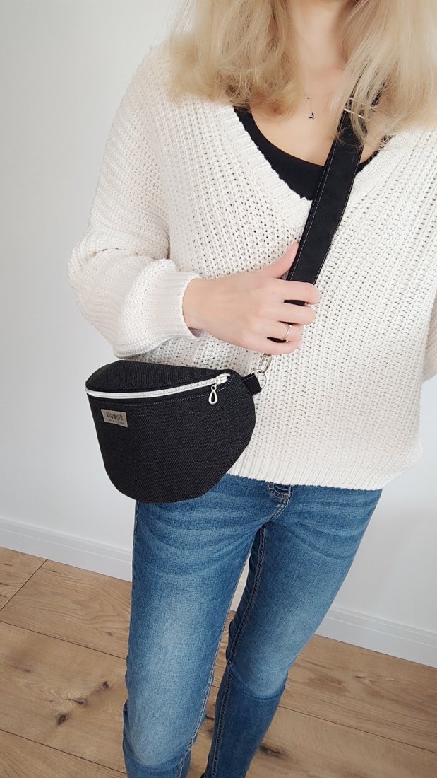 Nerka, saszetka do noszenia na ramieniu z regulowanym paskiem, zapinana na suwak, w środku mała kieszonka na suwak.