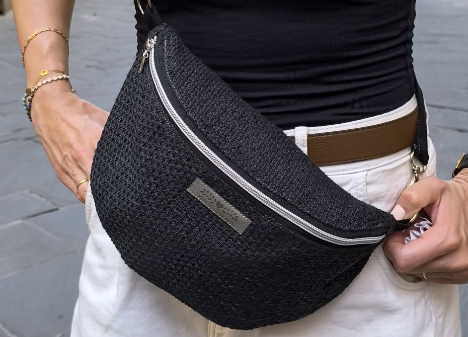 Nerka, saszetka do noszenia na ramieniu z regulowanym paskiem, zapinana na suwak, w środku mała kieszonka na suwak.