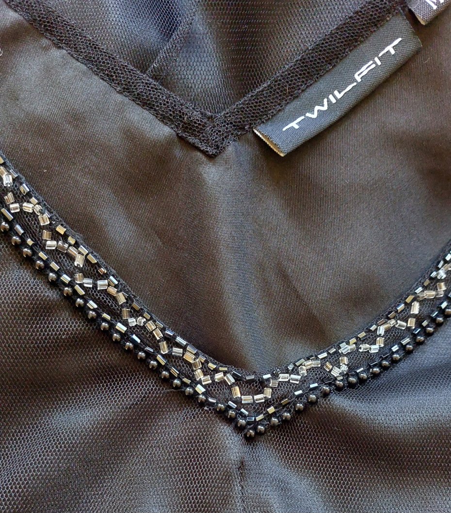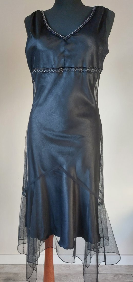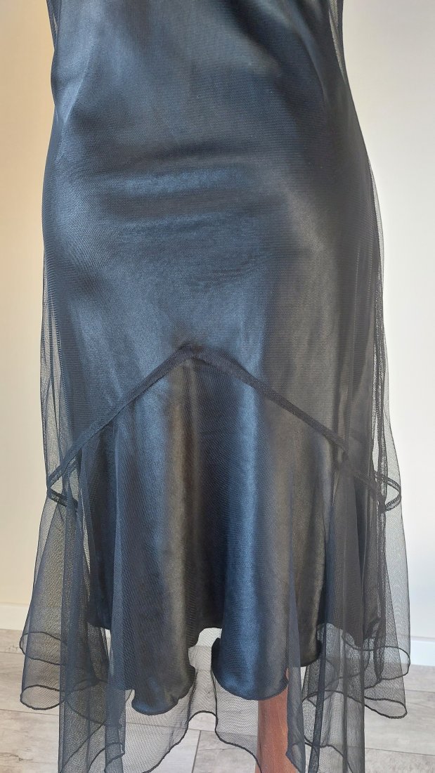 Czarna sukienka skandynawskiej marki Twilfit w idealnym stanie, wykonana z cienkiej, siateczkowej tkaniny, wewnątrz podszewka. Rozmiar M.