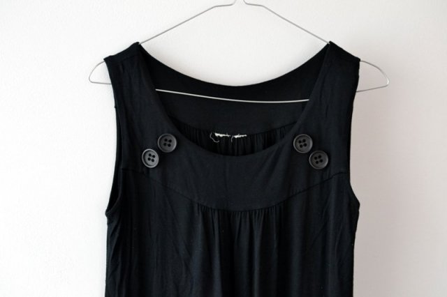 Czarna tunika na grube ramionka. Zdobiona guzikami