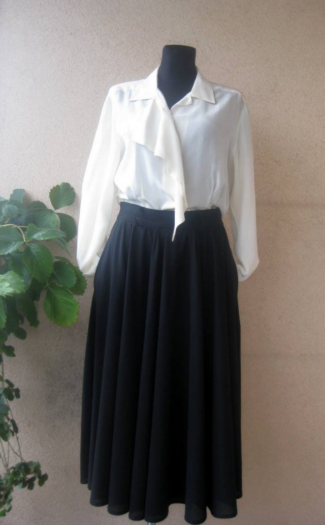 Śliczna angielska spódnica vintage, bez podszewki. Cięta z 4 szerokich klinów, pięknie się układa. Zamek z tyłu, kieszenie do wewnątrz. Stan bardzo dobry. Materiał 100% poliester. Rozmiar z metki 14. Podaję wymiary mierzone na płasko;