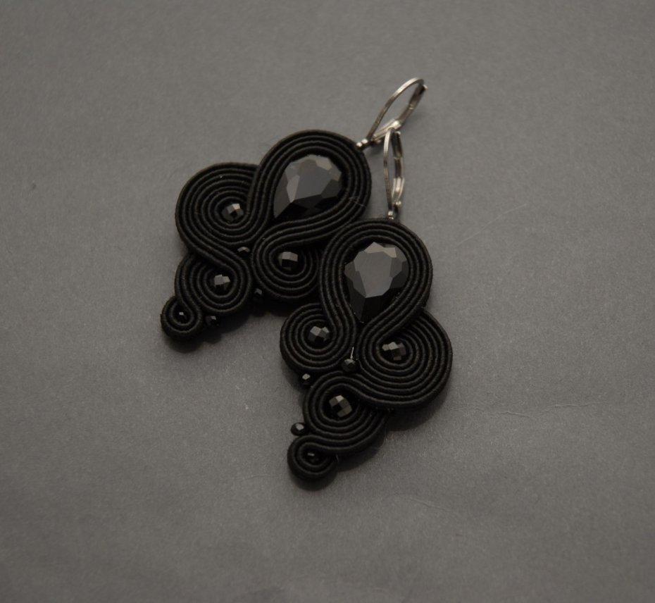 Oferuję klipsy zrobione techniką sutasz, ozdobione fasetowanymi kaboszonami i onyksami