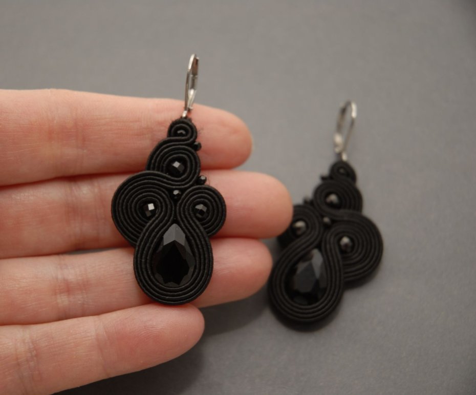 Oferuję klipsy zrobione techniką sutasz, ozdobione fasetowanymi kaboszonami i onyksami
