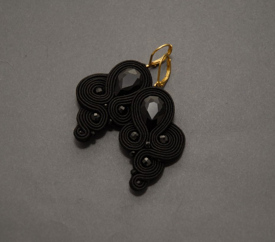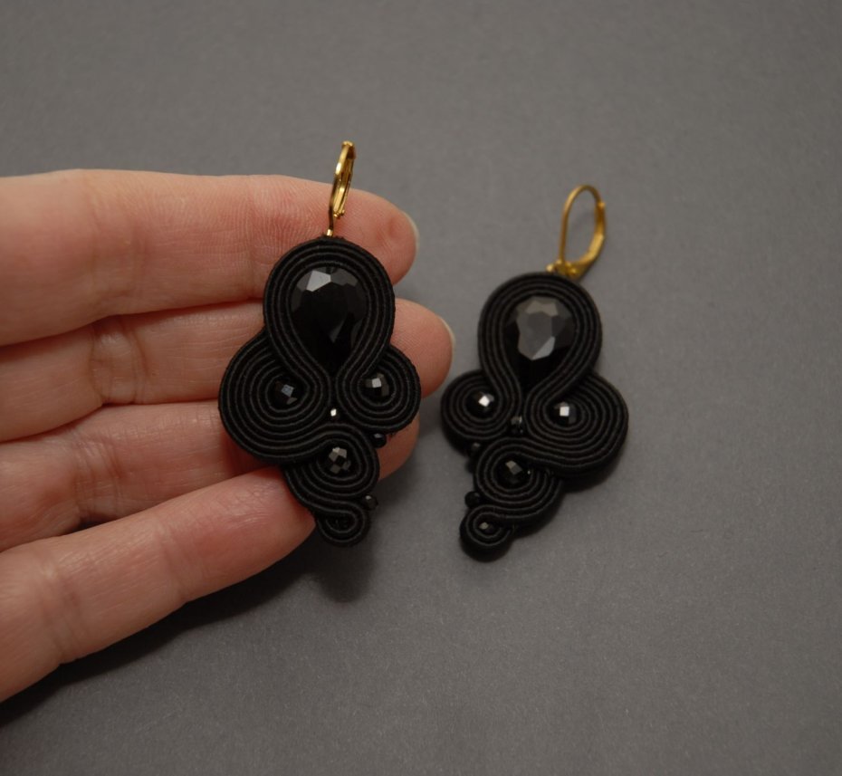 Oferuję klipsy zrobione techniką sutasz, ozdobione fasetowanymi kaboszonami i onyksami