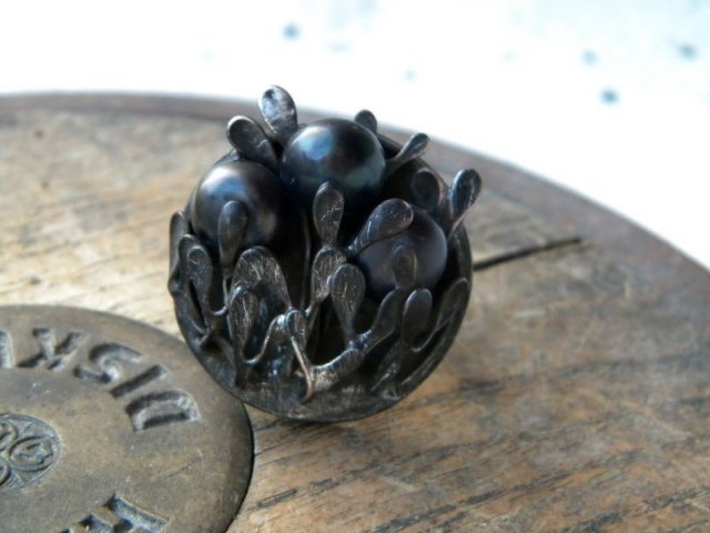 Rezerwacja dla Kasi - pierścionek z pereł w ocynowanej miedzi .