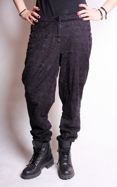 Czarne spodnie w ciekawe wzory ,obniżony stan, rozmiar m