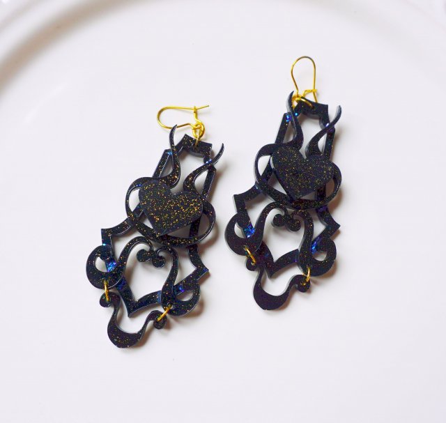 Czarne zawijasy - kolczyki wykonane z czarnej pleksi.