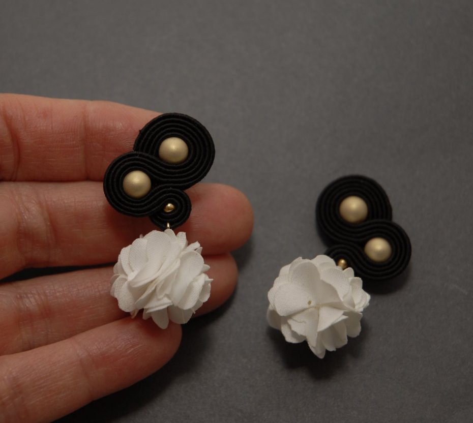4.  > czarno-białe klipsy sutasz z kwiatkiem (nr 7121765)