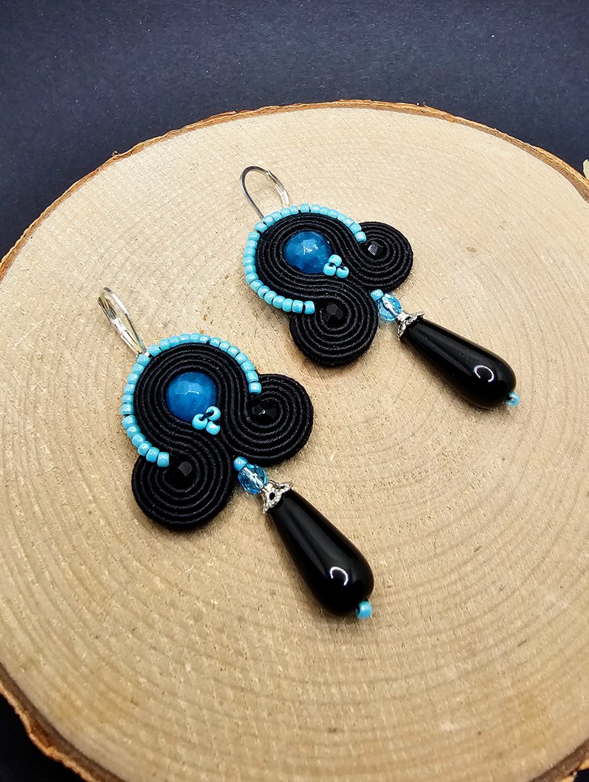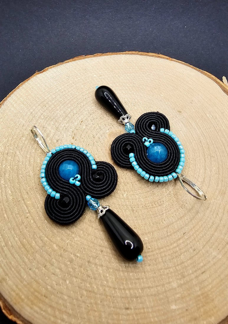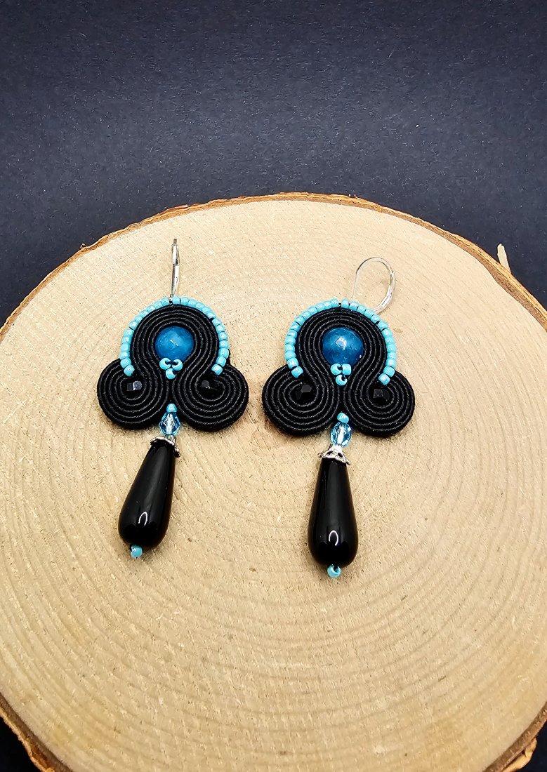 Czarno-turkusowe kolczyki sutasz.