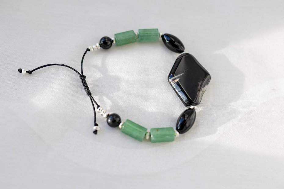 Tagi: #awenturyn, #bransoletka regulowana, #bransoletka z kamieni, #czarny agat i turmalin