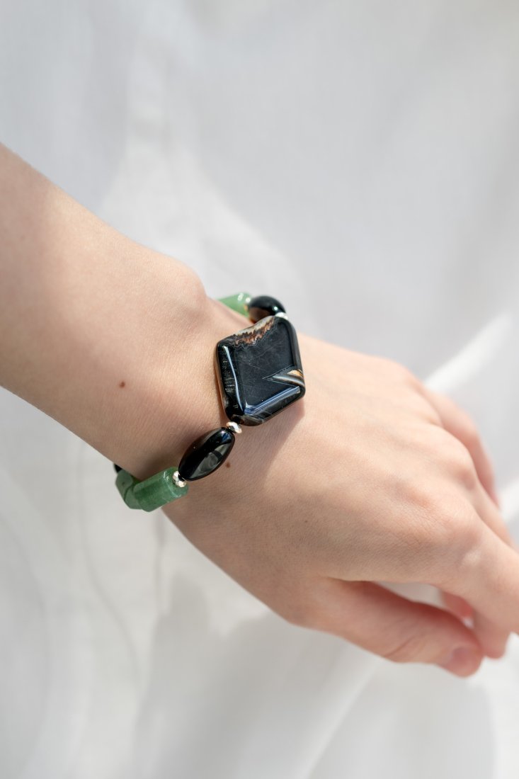 Kompozycja łączy w sobie urodę i moc czarnego agatu, awenturynu, czarnego turmalinu i hematytu. Idealny prezent dla siebie lub kogoś wyjątkowego.