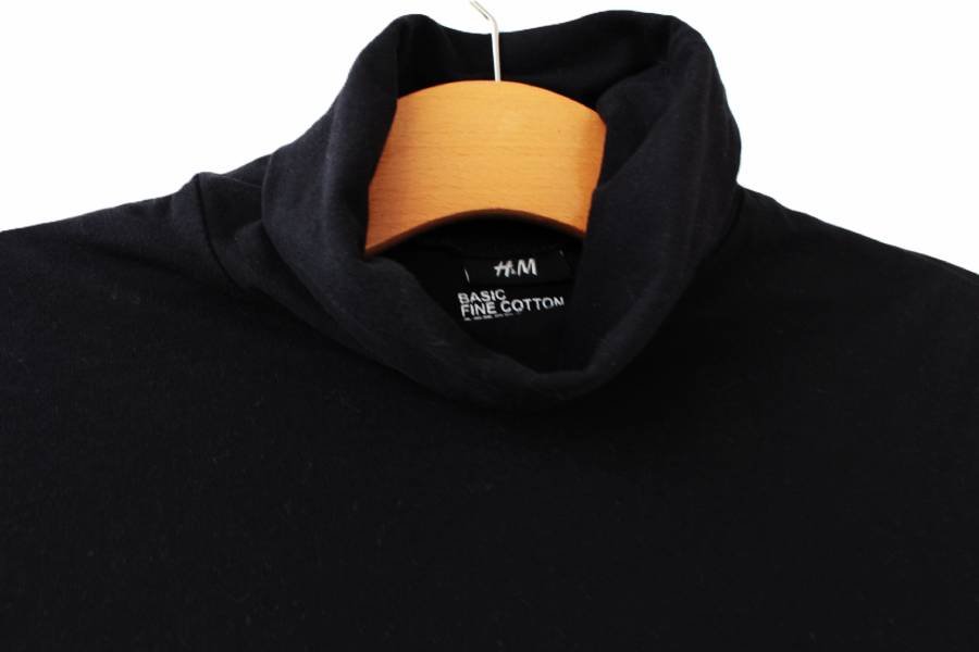 Bawełniany golf vintage w kolorze czarnym. Elastyczny, miękki materiał (dzianina). Nie jest to sweter, lecz bluzka na długi rękaw z golfem.