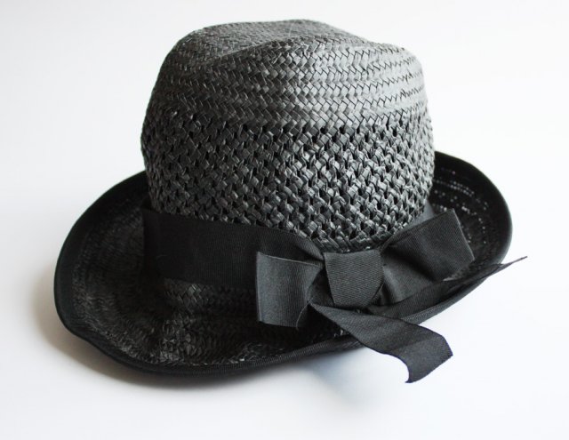 Czarny, letni kapelusz z małym rondem marki H&M Divided. Miejscami ażurowy, z prześwitami.