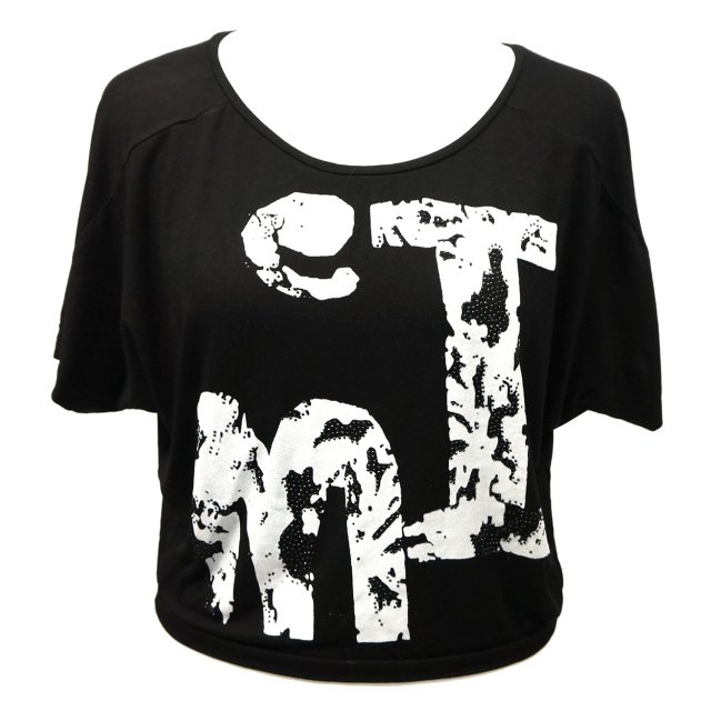 Czarny krótszy nietoperz z nadrukiem i czarnymi kamykami