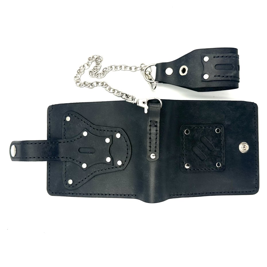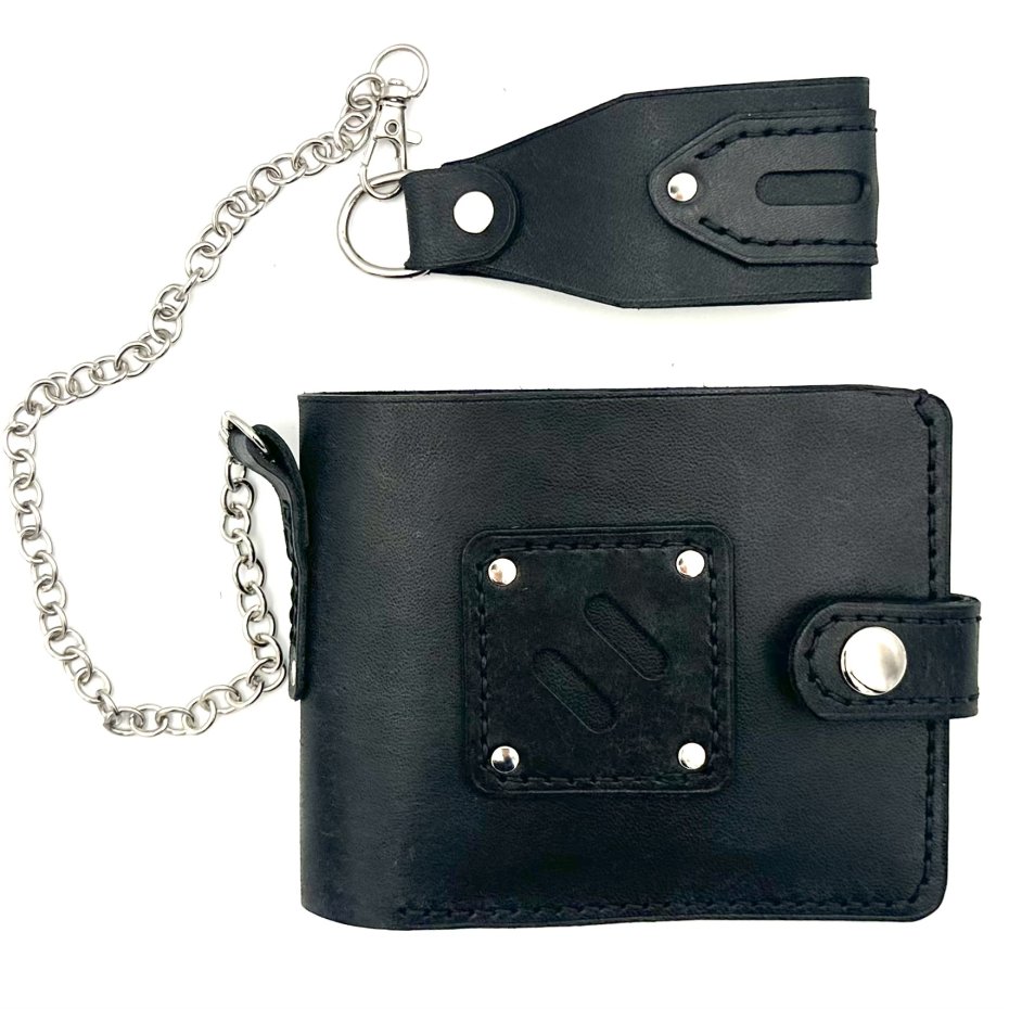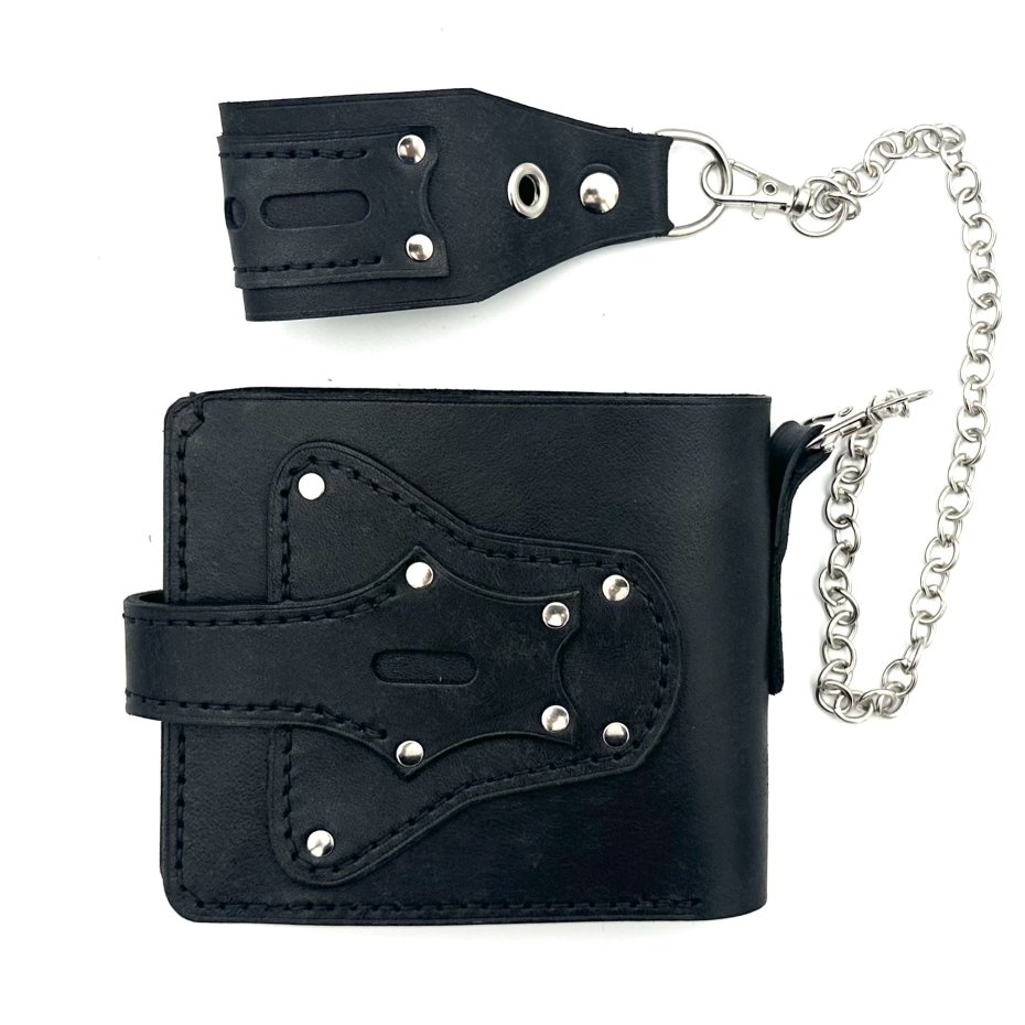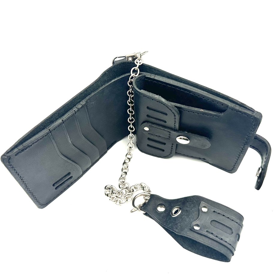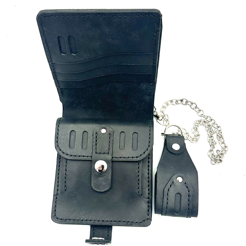 Całość dopełnia skórzana szlufka na pasek połączona ze srebrnym, odpinanym łańcuszkiem ????, która nadaje portfelowi wyrazisty, lekko motocyklowy charakter ????️.