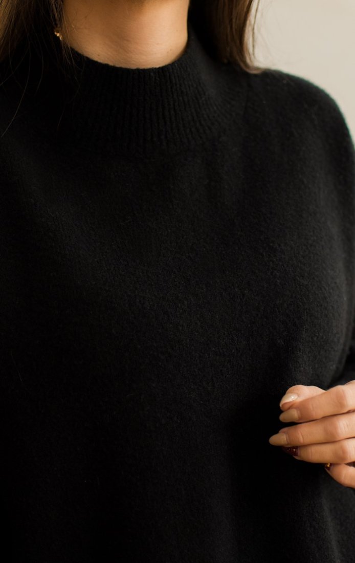 Miły w dotyku dłuższy czarny sweter / tunika / sukienka.