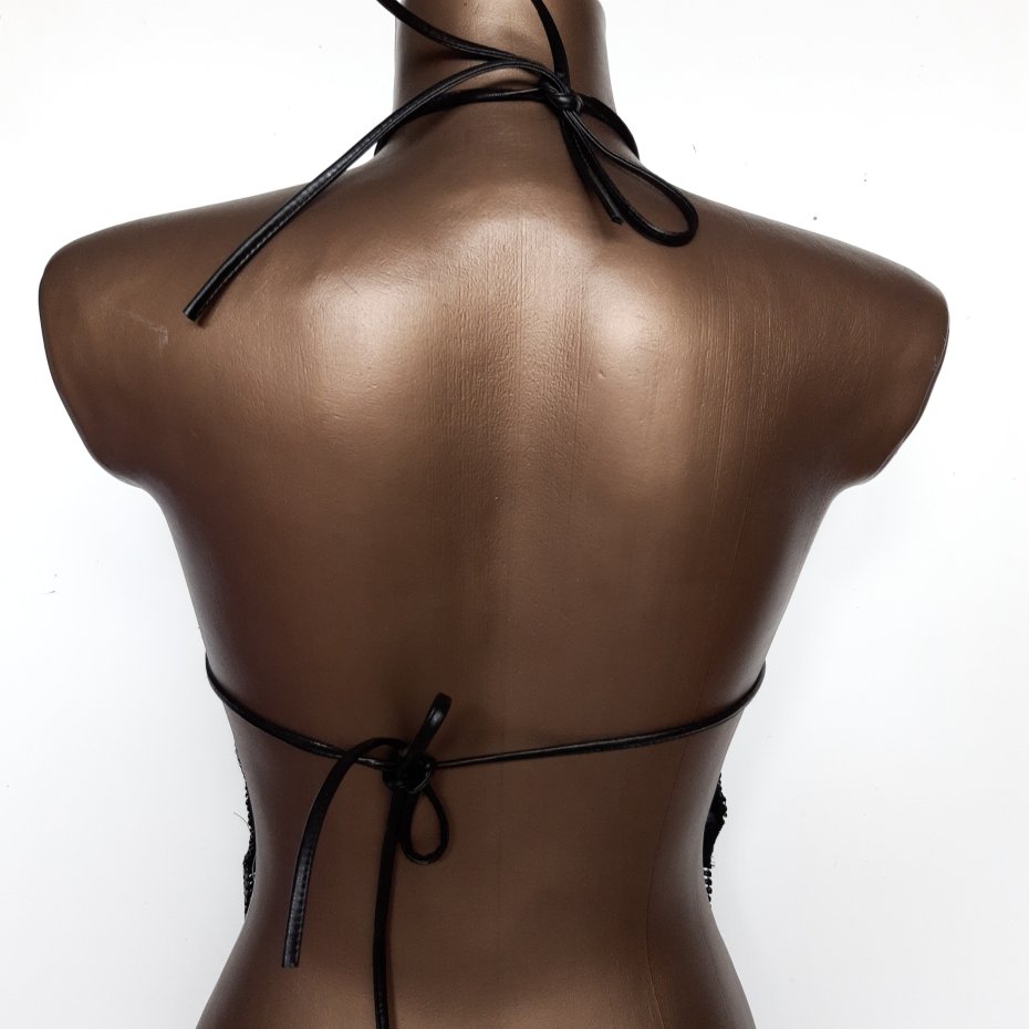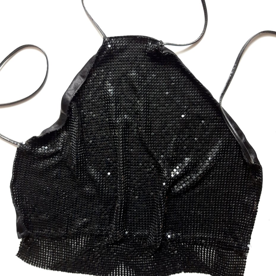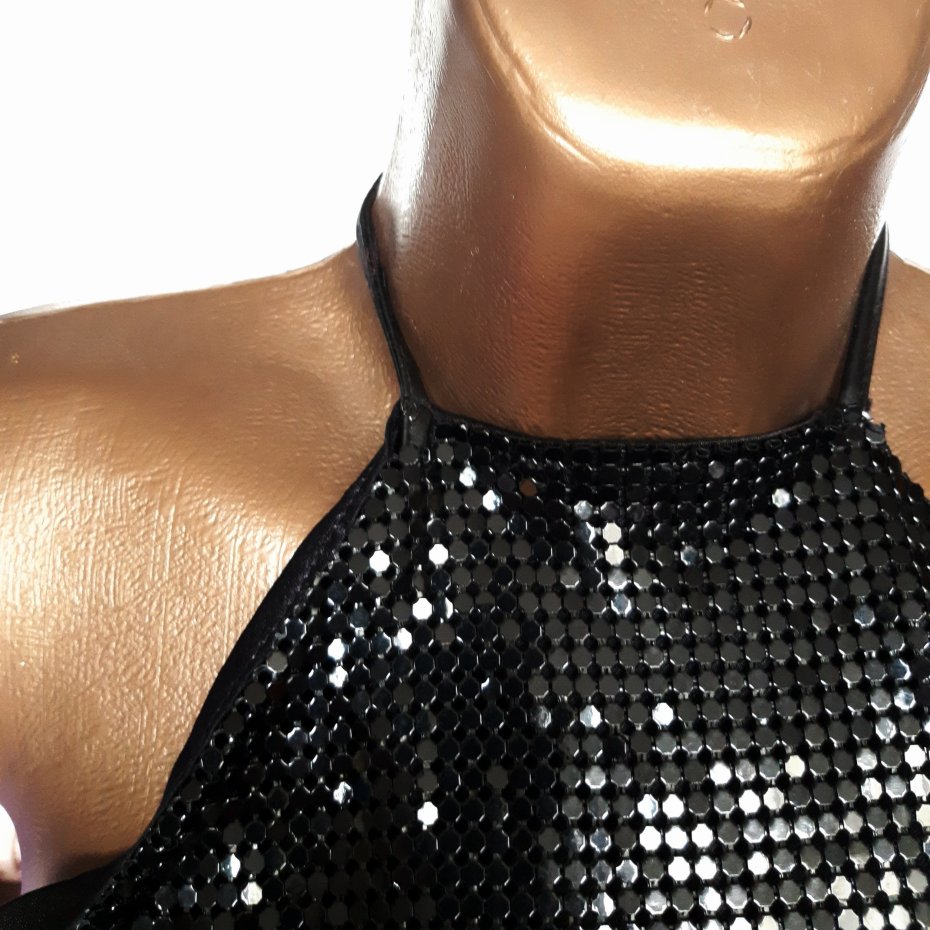 Czarny top uszyty z takiej cienkiej metalowej siateczki.