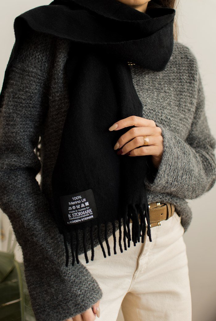 Tagi: #czarny wełniany szalik, #szalik z wełny merynosa, #wełna merino