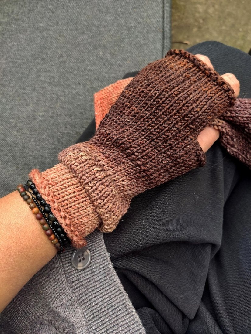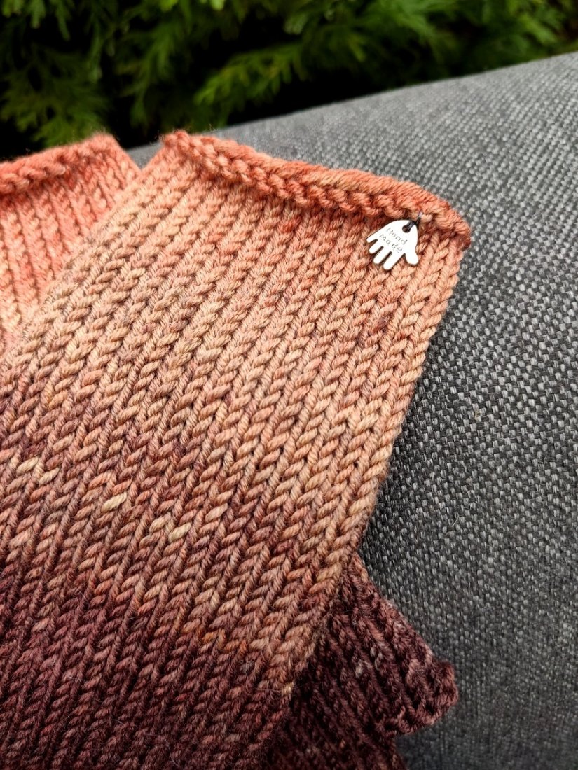Ciepłe mitenki wykonane na drutach z wysokiej jakości włóczki w optymistycznej kolorystyce. Włóczka- to 100% wełna merino superwash, trochę sprężysta, dzięki czemu ładnie dopasowuje się do dłoni.