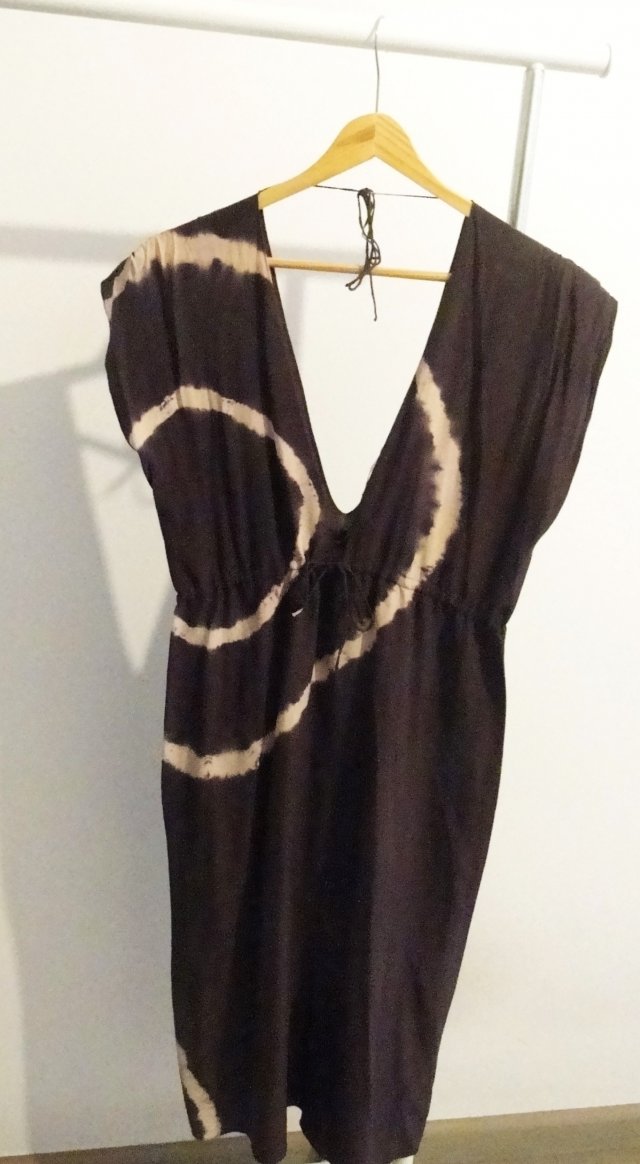Śliczna sukienka marki Gharani Strok. Piękny vintage, kolor czekoladowy brąz w beżowe mazie. Niestety na zdjęciu nie udało mi się tego ująć dokładnie...Styl trochę indyjski...