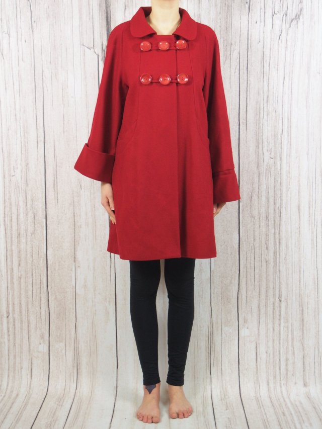 świetnie skrojony czerwony płaszczyk marki atmosphere. Materiał: wełna 68%, poliester 32%, podszewka poliestrowa.
